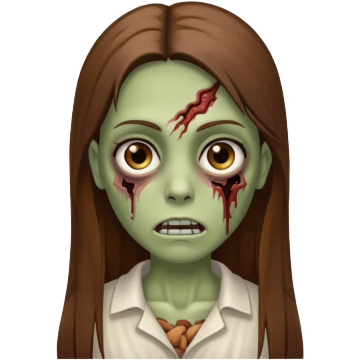 zumbi de franja, cabelo longo, liso e castanho. Olho amendoado e castanho emoji | AI Emoji Generator