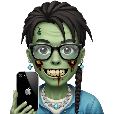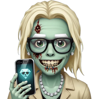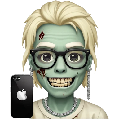 zumbi do iPhone com grillz de diamante, com nudread preto e óculos quadrado emoji | AI Emoji Generator
