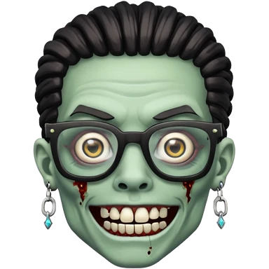 crie um emoji de zumbi feminino, com pele verde, óculos preto e cabelo longo preto emoji