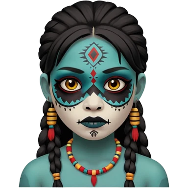 garota zumbi pele negra cabelo longo e liso preto emoji