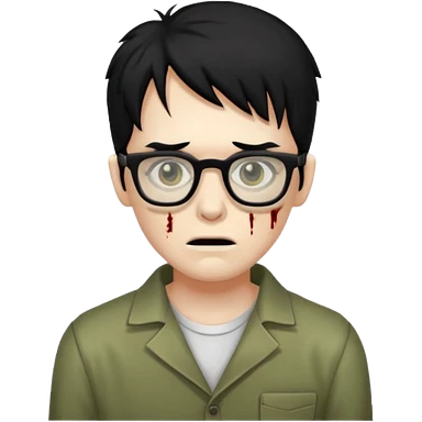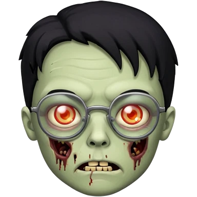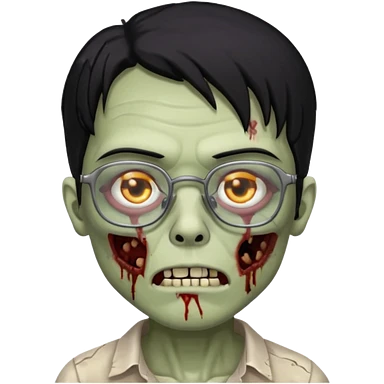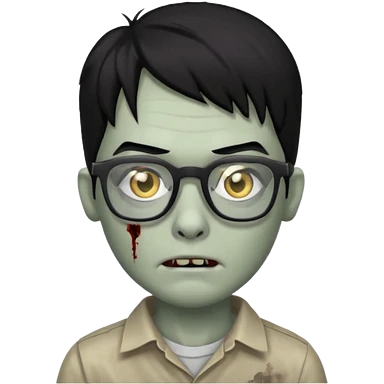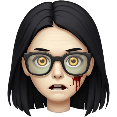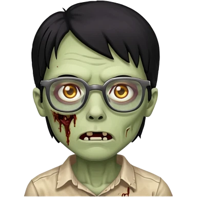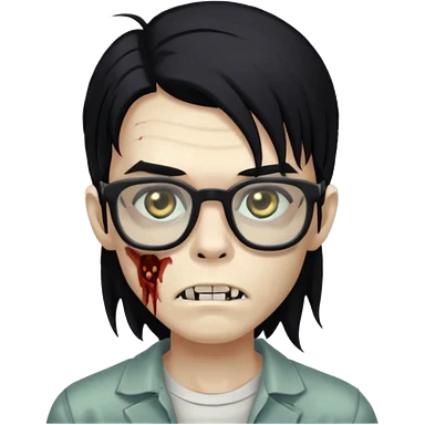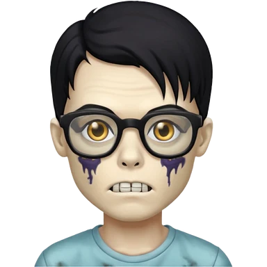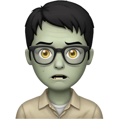 zumbie de cabelo preto,olhos pretos e oculos pequeno emoji | AI Emoji Generator