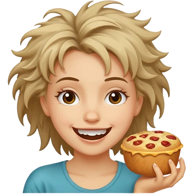 Een 52 jarige vrouw met middel lang blond haar, grijs met zwarte sjaal, zonnebril, zwarte sweater en blauwe broek emoji