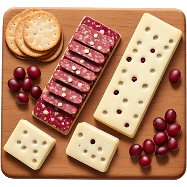 Multigrain crackers, white cheddar cheese, salami, and chocolate cranberries emoji