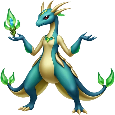 Exotic Ivy Dragonic Feathery Scaly Meloetta-Manectric-Leafeon-Electrike-Jolteon-Zygarde-Renamon-hybrid-fusion-Fakémon-creature, full body emoji