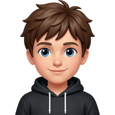 Boy with brown messy hair and black hoodie emoji