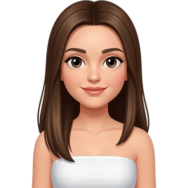 Girl with brown long straight hair and wearing a white tank top without straps emoji