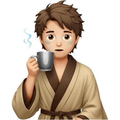 Create an emoji-style image of a warm morning cup of coffee with steam rising and a cheerful smiling face on the cup. The background should feel cozy and bright, like morning sunshine. emoji