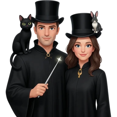 magician couple and their pet cat emoji