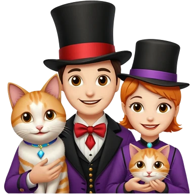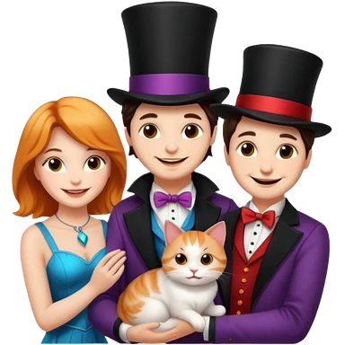 magician couple and their pet cat emoji