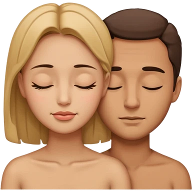 there is a white woman with short brown hair and a black man with no hair and a beard. The woman puts her head on the man's shoulder emoji