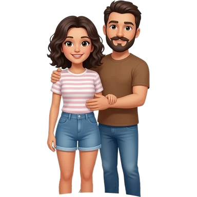 This girl standing at the end of a yacht with a brown guy holding her with just above shoulder length black curly ish hair and a mustache and goatee facial hair combo emoji
