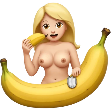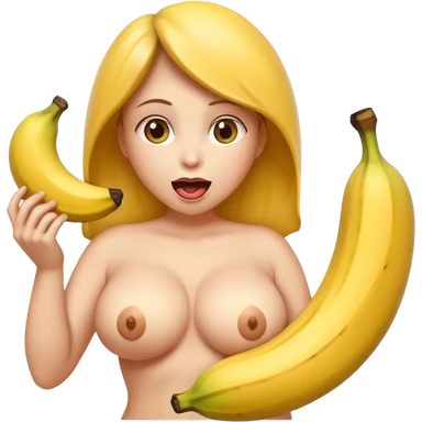 naked big boobed woman with a big banana in her mouth emoji