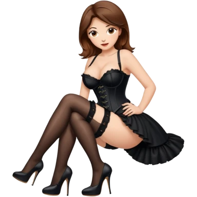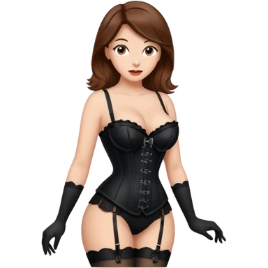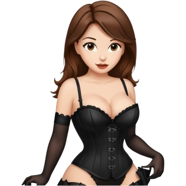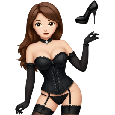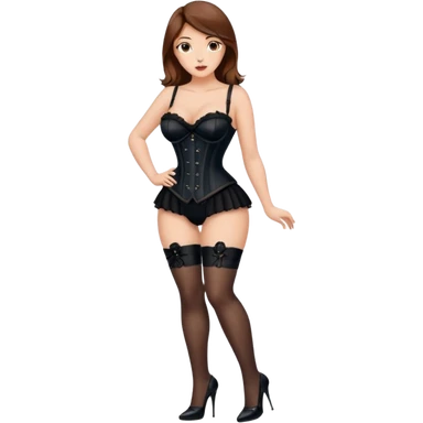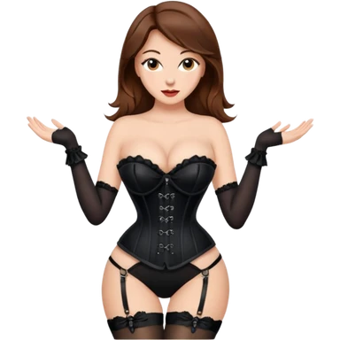 brown hair woman with very big boobs wearing stockings on her legs a corset and high heels emoji