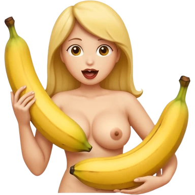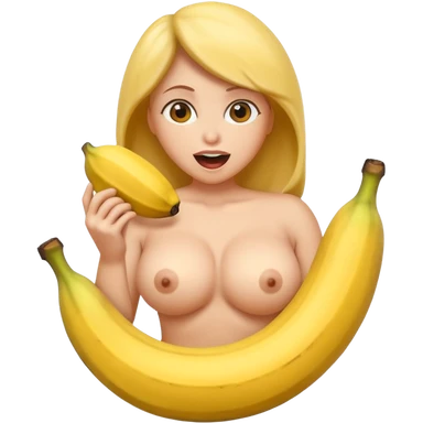 naked big boobed woman kissing a big banana emoji