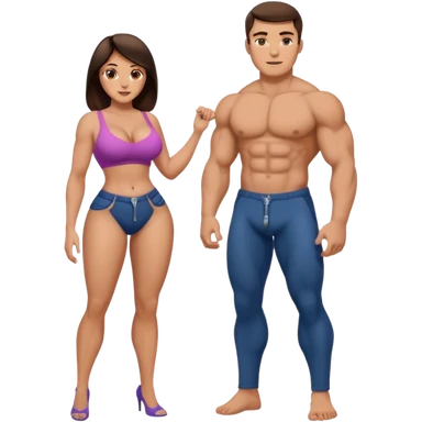 topless big boobs brunette woman unzipping muscular man's pants emoji