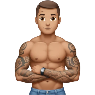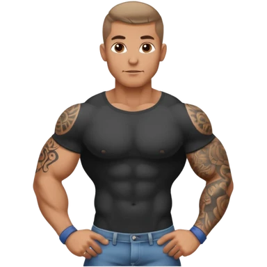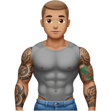 tattooed sleeves very muscular male with big penis sticking up from between legs emoji
