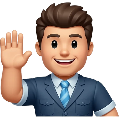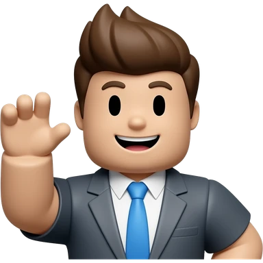 Quiero un personaje de roblox sonriendo y la mano arriba emoji