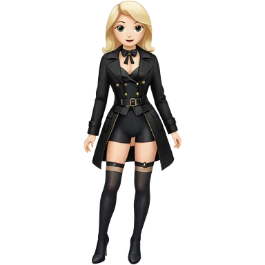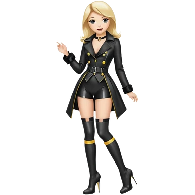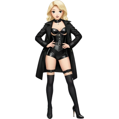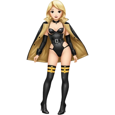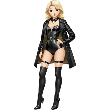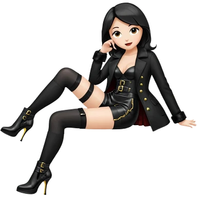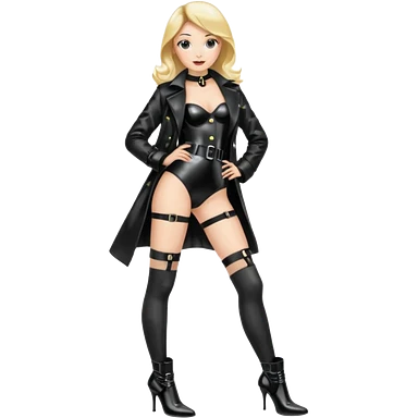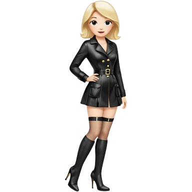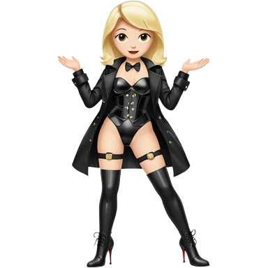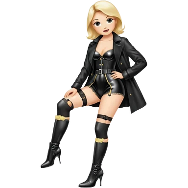 Create an female emoji with stockings and garter belt wearing a shiny wetlook coat and shiny high heel boot that go below the knee emoji