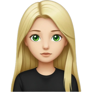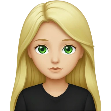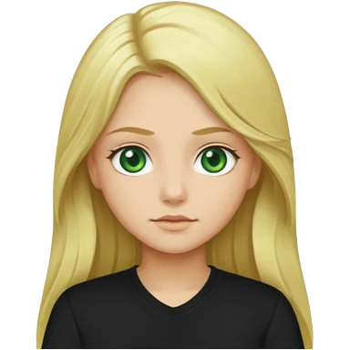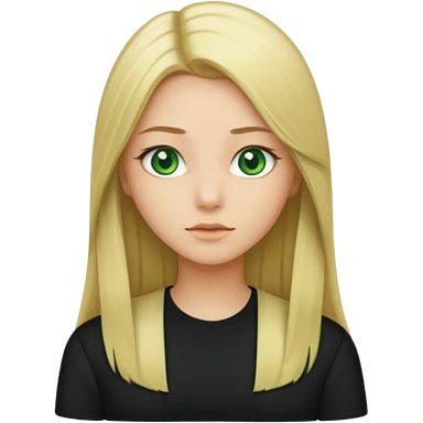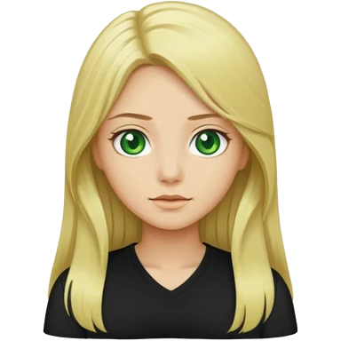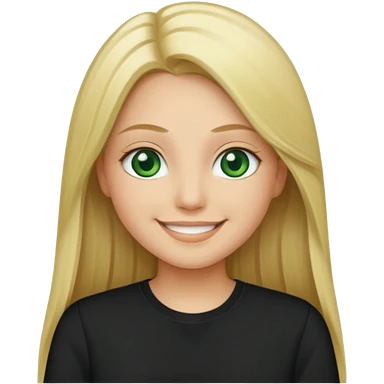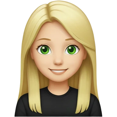 Long straight blonde hair with green eyes and black shirt smiling emoji