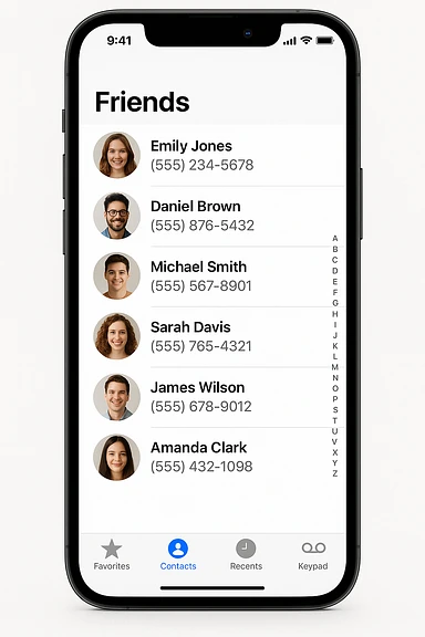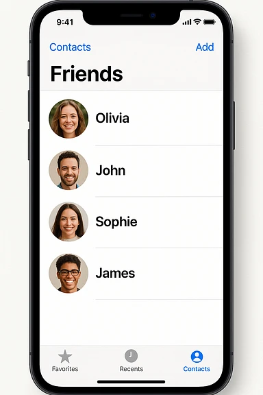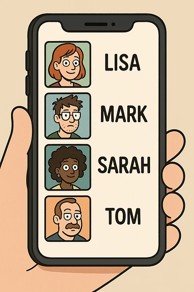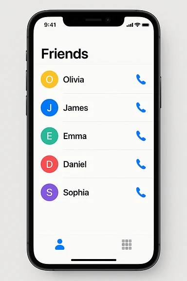 Front screen of the phone with friends' contacts emoji