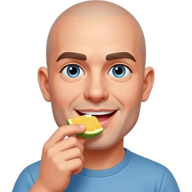 Bald man eating fruit sexily emoji