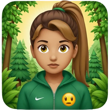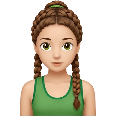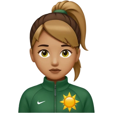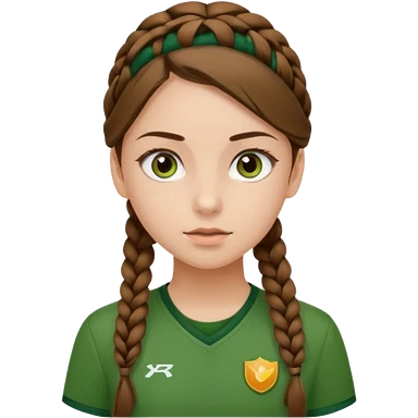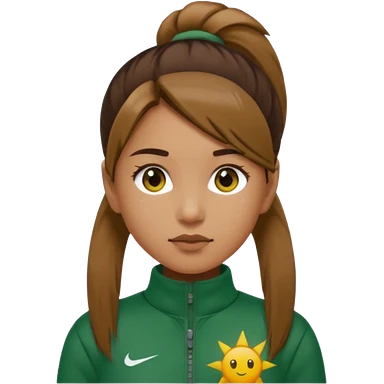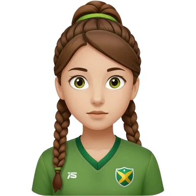 Kahverengi at kuyruklu ışıltılı bir örgülü kahverengi gözlü yeşil formalı içine yeşil atletli çekik gözlü bir kız emoji