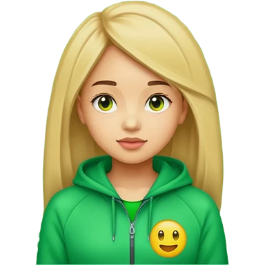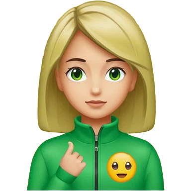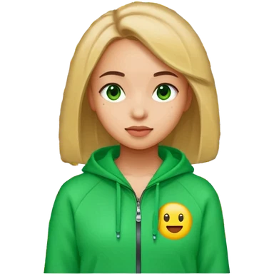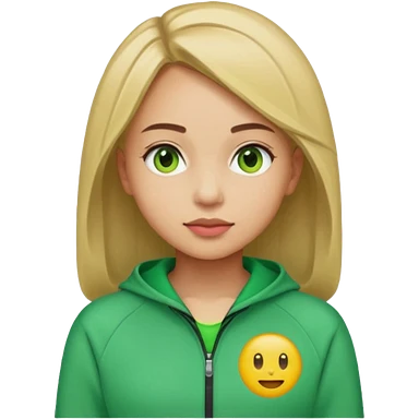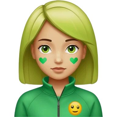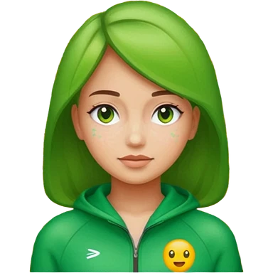 "A mosaic portrait of a girl in a green tracksuit, made of tiny emojis, digital art style, pixelated emoji textures, vibrant colors, creative composition." emoji