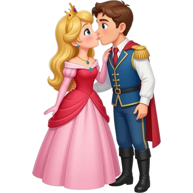 Kırmızı Ve Açık elbiseli taçlı daha fazla takılı bir prensi öpen prenses tüm vücut emoji