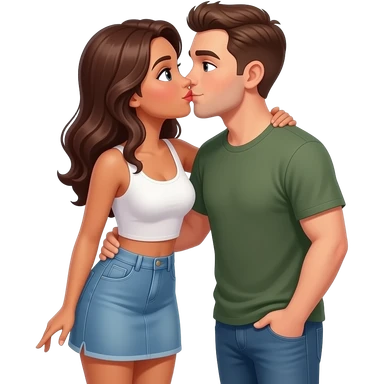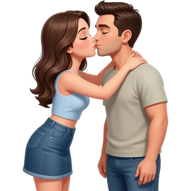 mini etek ve crop giyip bir adamı öpen kadın emoji