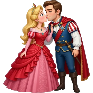 Kırmızı Ve Kabarık elbiseli taçlı daha fazla takılı bir prensi öpen prenses tüm vücut emoji