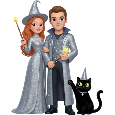 magician couple and their pet cat emoji