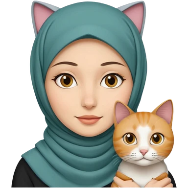 wanita berhijab dan kucing emoji