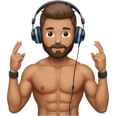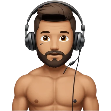 create a Men with Beard and Headphones and some hairs on his head without shirt emoji