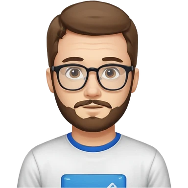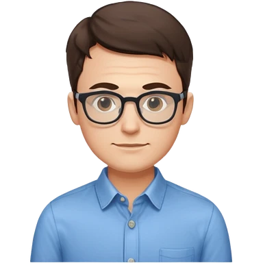 a man in his early 20s wearing glasses for a tech company, extroverted, brown hair emoji