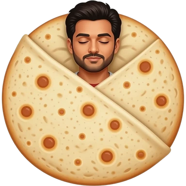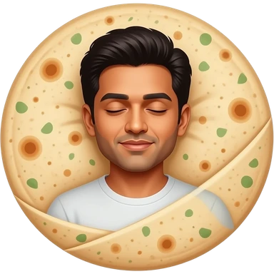 Make an emoji that where Allu Arjun is sleeping very nicely and the blanket he have taken half of body half of his body and the blanket is a roti emoji