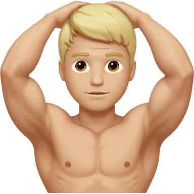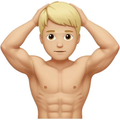 Blonde man with his face covered with two arms going through down left to up right emoji