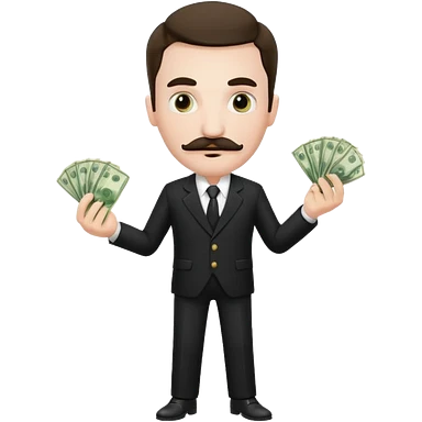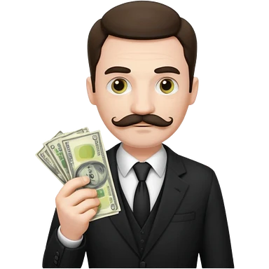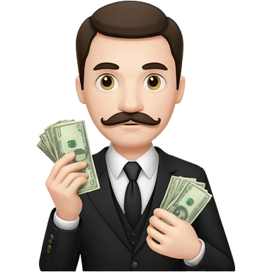 suspicious man uin a suit with a mustache and money emoji