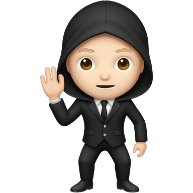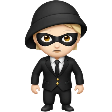 thief emoji wearing a black and white suit, sneaky expression emoji