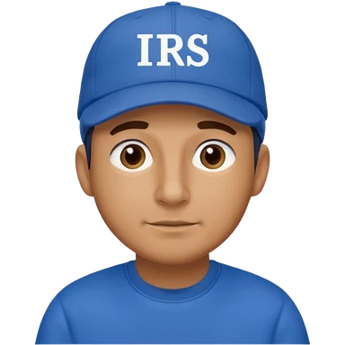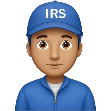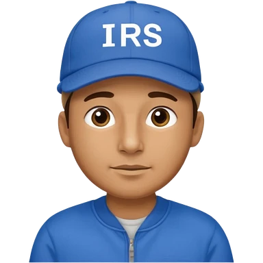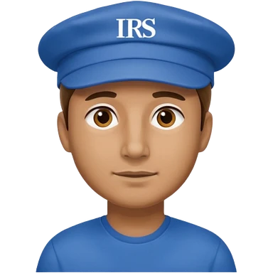 a man dressed in blue with a cap on that says IRS emoji