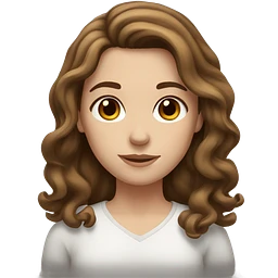 white girl with shoulder length brown wavy hair and brown eyes emoji