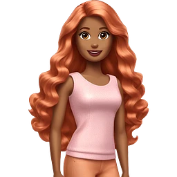 Barbie princess with brown eyes and big long wavy red hair emoji