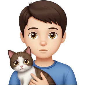 Brunette boy with a white Persian cat emoji