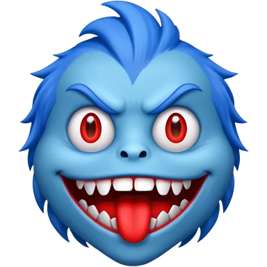 Quiero que hagas un monstruo azul y quiero que tenga boca roja y tambien pelo azul emoji