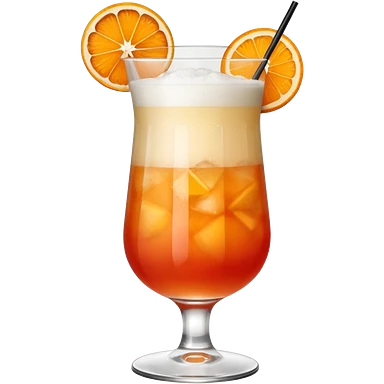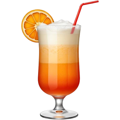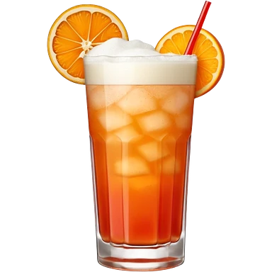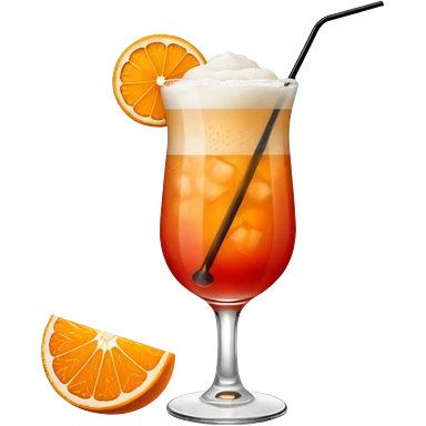 A tall glass filled with a frothy orange-red Garibaldi cocktail, topped with an orange wedge. emoji