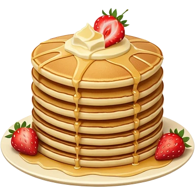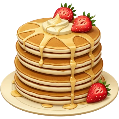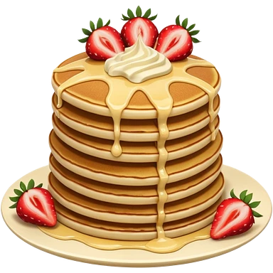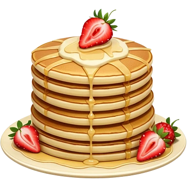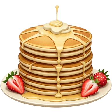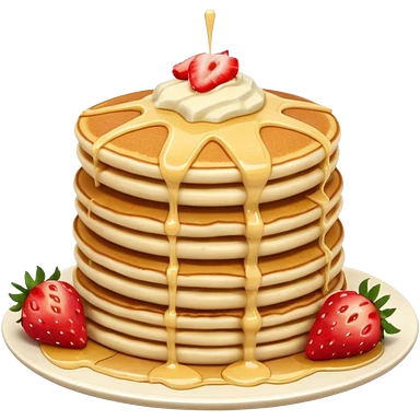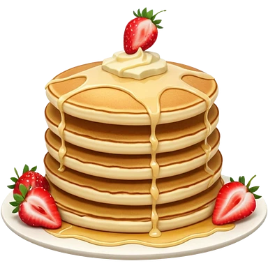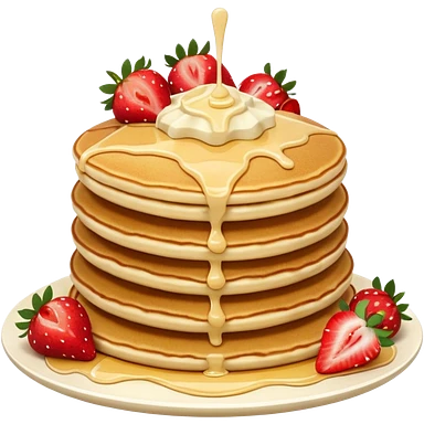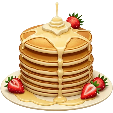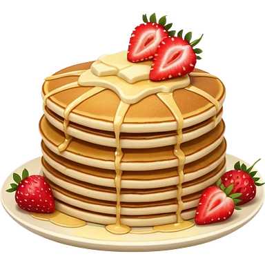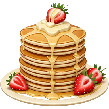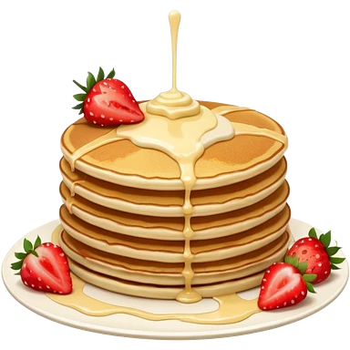 a stack of pancakes with melted white chocolate drizzle and strawberries emoji
