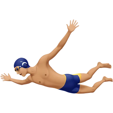 Cute emoji of a swimmer diving into a pool, rounded shapes, friendly style, bright blue water, minimal facial details. emoji