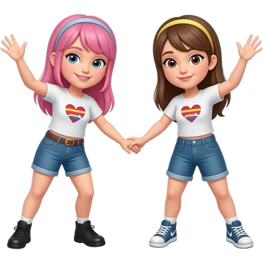 Two girls doing scissors with thier hands together emoji