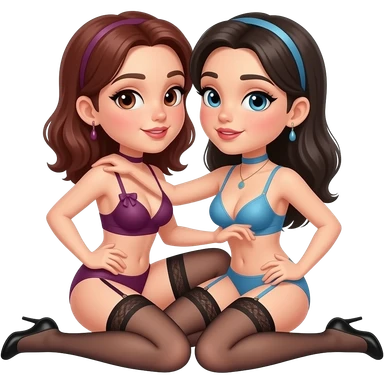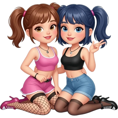 Two girls doing a sex pose emoji