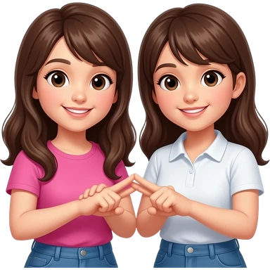 Two girls putting their fingers with each other to from scissors emoji