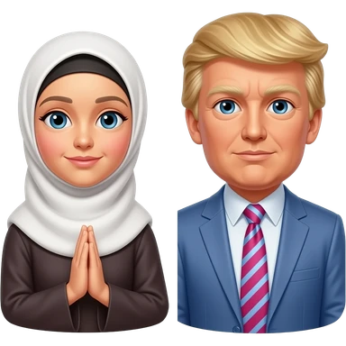 A sister in hijab hugging a father President Donald Trump and his Talller son Barron Trump emoji